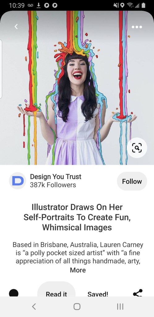 Sorry, I’m hungry/love salami and got distracted. Somehow, I stumbled upon this Australian illustrator, Lauren Carney, who combines her talent for graphic design with photographic self-portraits, and the results are ah-mazing. Better than I could ever do right now, but I could at least make a corny attempt, right? Her designs are colorful, whimsical, and pretty.