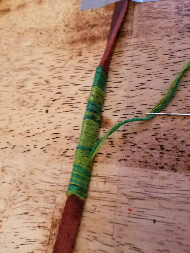- Try not to exceed 2 inches total design of thread wrapping; you want some of this pretty leather to show too!