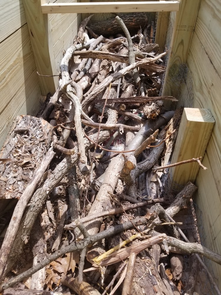 We decided because we live in the woods, hugelkultur seemed like the most logical method. I won’t extend this post any more than I need to, so click here to read what Bob Vila thinks of this crazy hippie Eastern European farming method. The cliff notes are basically recreating a forest floor of naturally decomposing elements that feed the plants from underneath that you are growing above (live compost beneath your bed that lasts for 10 years that you never have to tend to or till much). Some people call it lasagna gardening or ‘no dig’ gardening.