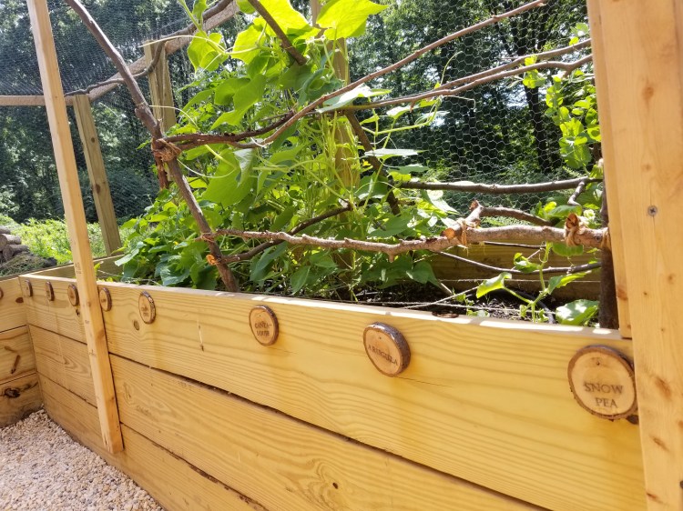 One day I’ll post and link how I made my own DIY wood slice garden labels. They came out super adorable and really added a finished but charming rustic element to this garden.